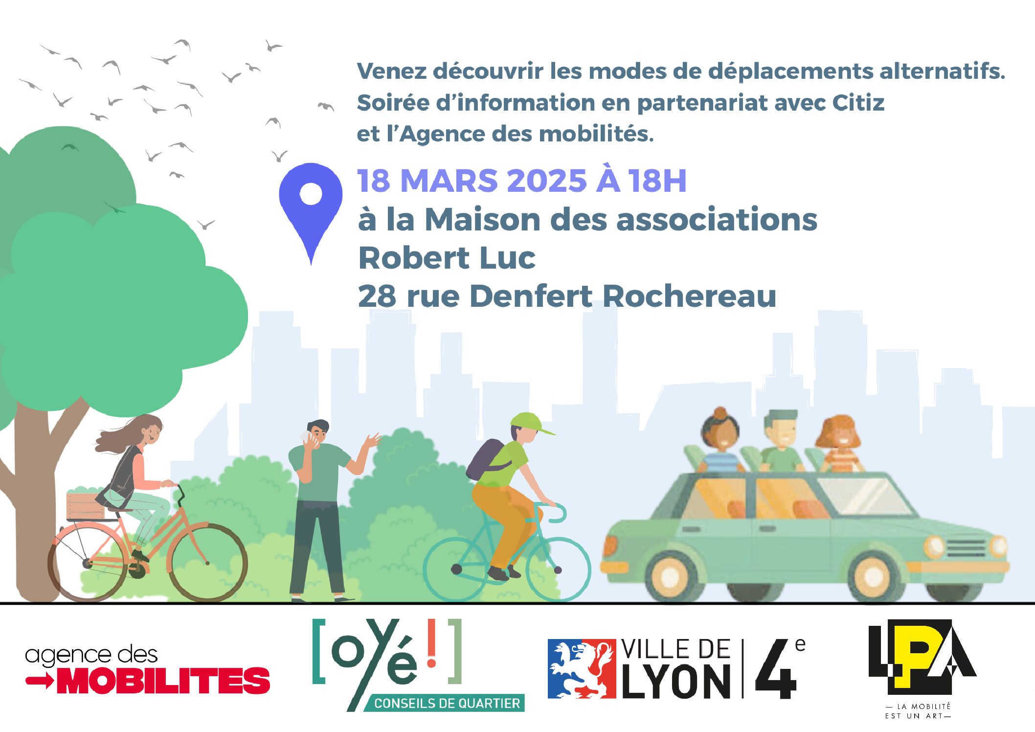 ZFE, vélos, transports en commun, covoiturage, autopartage… Vos conseils de quartier vous invitent le 18 mars 2025 à la maison des associations, 28 rue Denfert Rochereau de 18h à 20h.